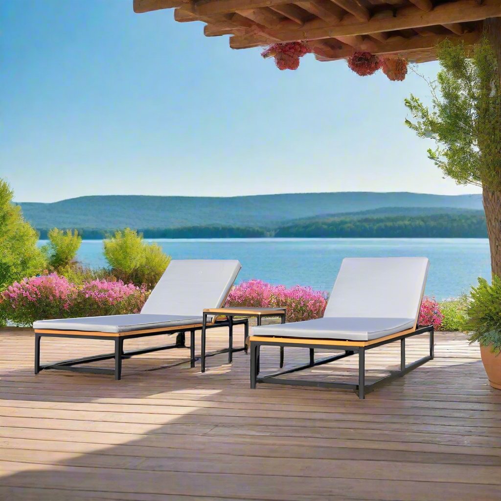Enhance your patio with a chaise lounge set that exudes elegance and comfort. The modern design and natural finish will elevate your outdoor space, making it the preferred spot for relaxation and entertainment.